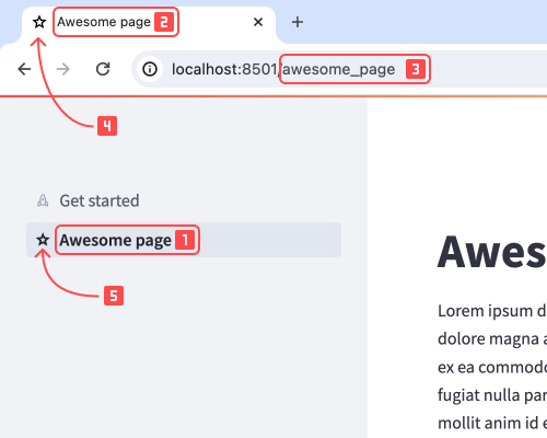 Within the navigation menu, Streamlit displays page labels and titles as follows: