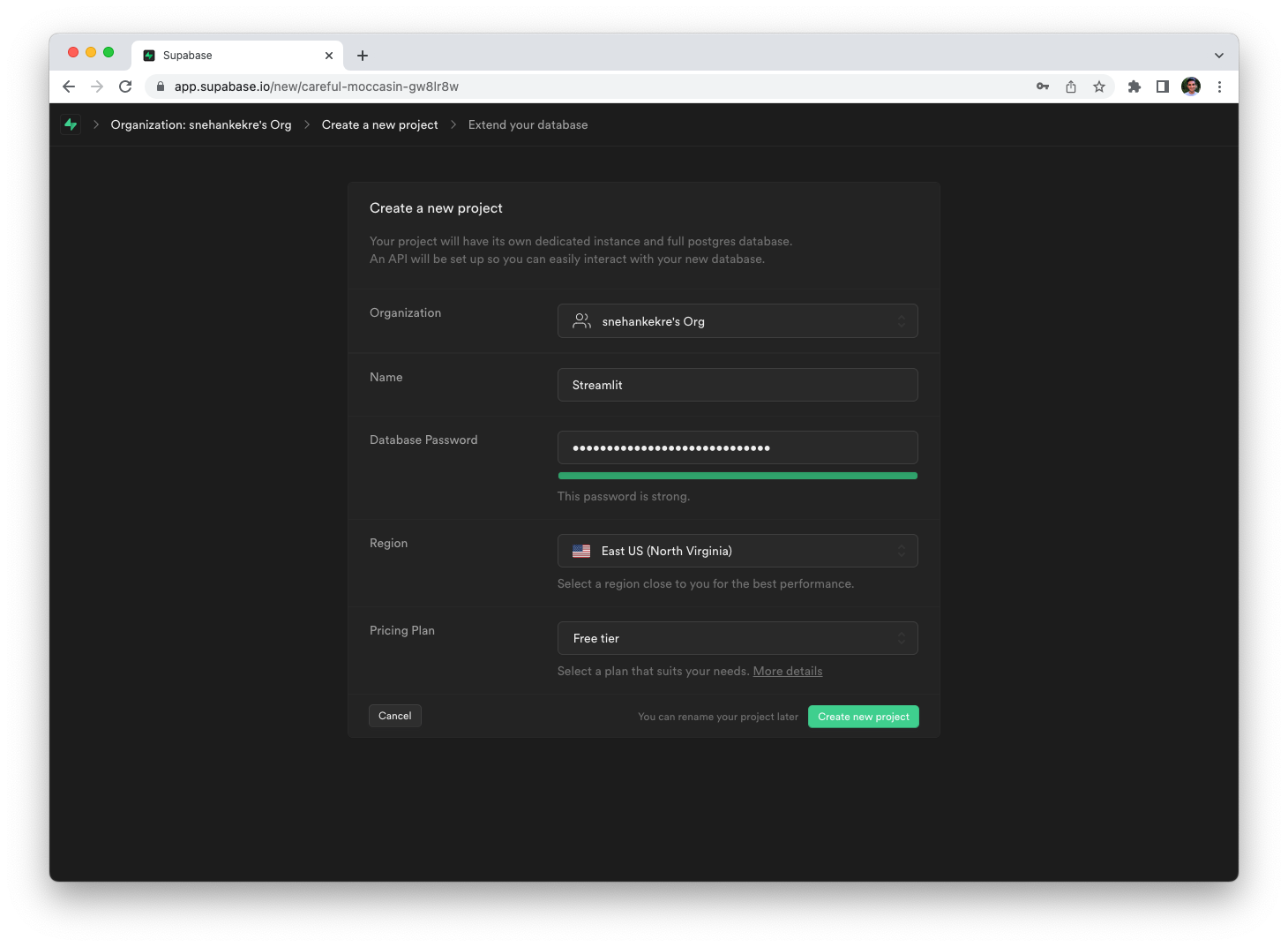 With your Supabase database created, you can now connect to it from Streamlit!